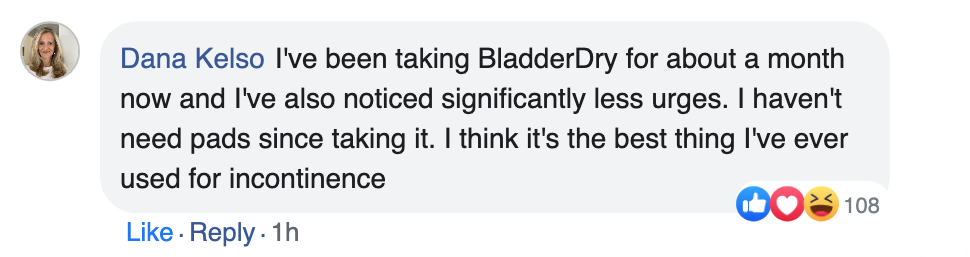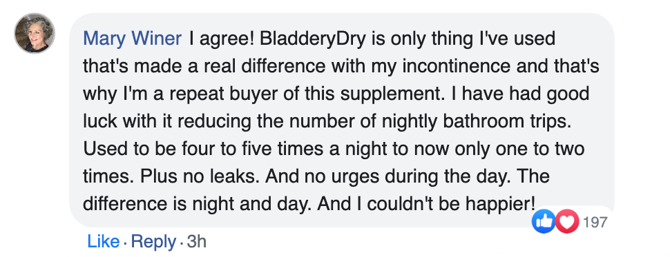 Since hitting the market, demand for BladderDry has soared and it's obvious why. Women taking BladderDry report a stunning reduction in urinary frequency and fewer bathroom trips - both day and night.